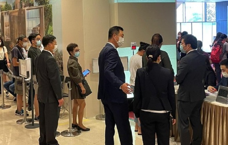 市區大型現樓新盤銷情加快。信和置業(00083)旗下觀塘凱滙第1期今日(14日)盡推165伙發售,當中包括50伙招標單位,設於奧運站奧海城商場的售樓處已有部分準買家及地產代理到場等候揀樓,氣氛熱鬧。