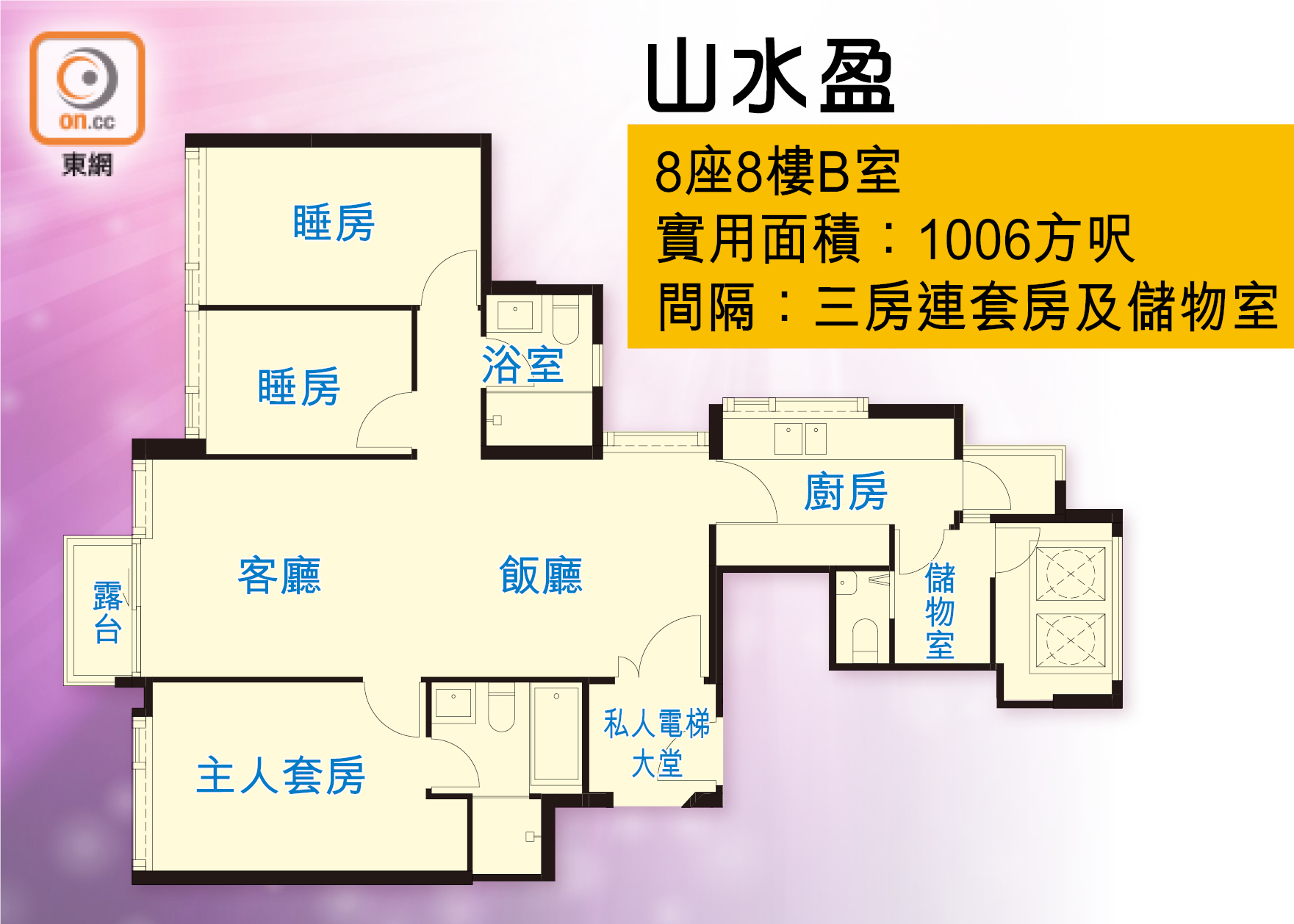 山水盈提供331伙,主打三房套連工作間間隔。