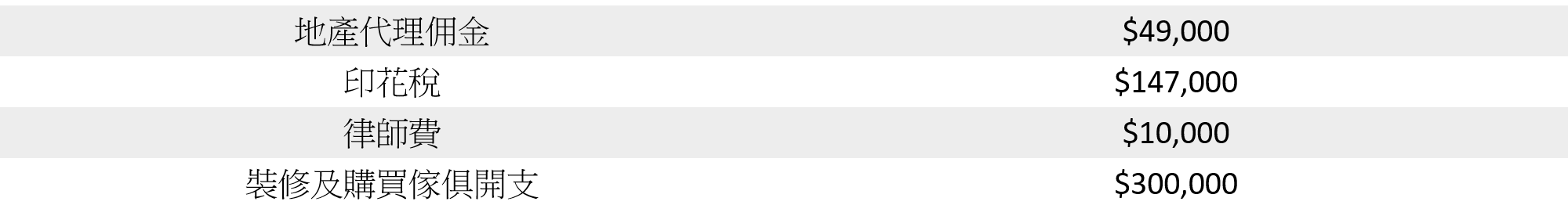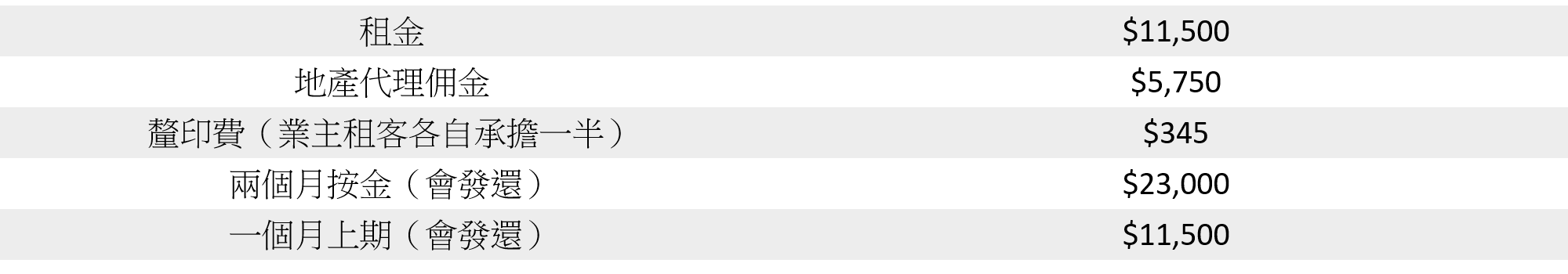 租樓涉及開支: