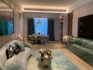 而同層H室亦有一個四房雙套房連裝修示範單位,實用面積1,258方呎,連44方呎露台及16方呎工作平台。