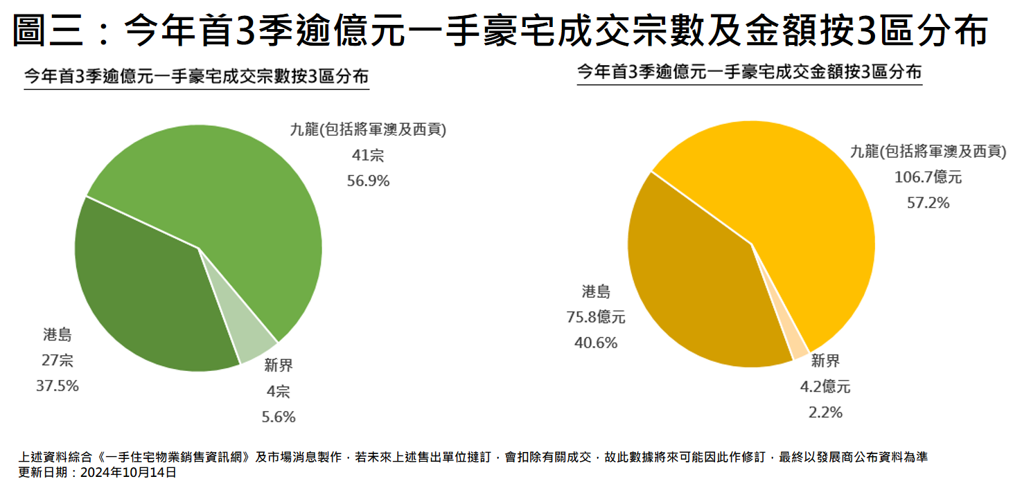 今年首3季九龍區逾億元一手豪宅成交「量額」最多 佔比超過一半