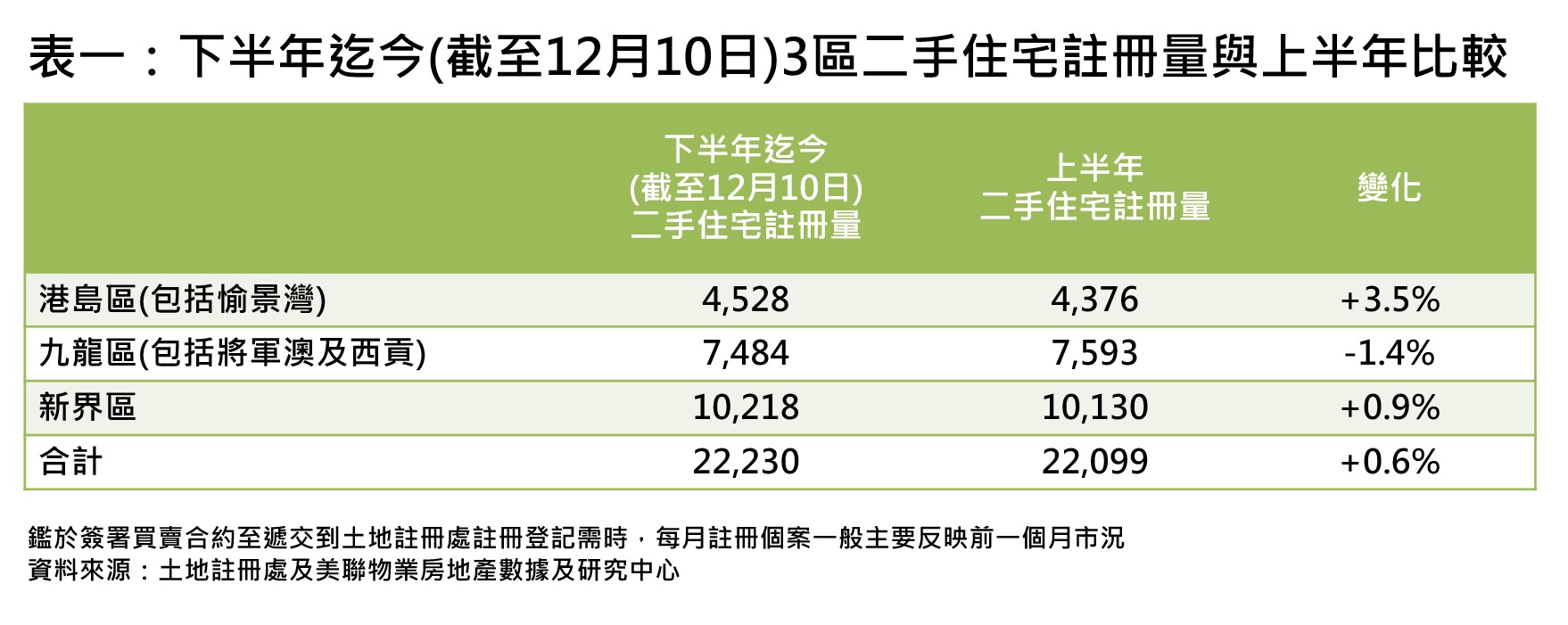 下半年二手住宅註冊「量額」超上半年