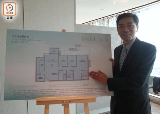 地王效應下,樓市氣氛熾熱 ,多區大型新盤蠢蠢欲動推售。會德豐地產旗下將軍澳南項目MONTEREY今午舉行發布會,首次展示2房及3房平面圖及介紹會所設施。