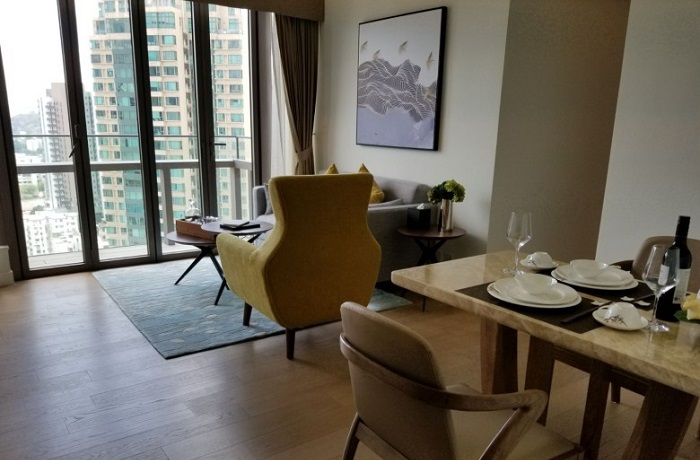舖王鄧成波兒子、陞域集團主席暨Tang’s Living Group行政總裁鄧耀昇表示,項目共提供79伙,面積由374至1,046方呎,間隔由一房至三房,月租由2.67萬至約6萬元,租金包括管理費及護理服務,單位連同家具出租,將於6月可入住,租約由一個月起,現時有近十組客戶已支付訂金。