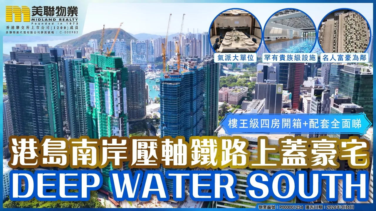 Deep Water South 第6B期(Deep Water South Phase 6B) 位於香港仔及鴨脷洲 香葉道11號,由會德豐 / 港鐵合作發展。項目設有2座樓宇,共提供154個單位,實用面積由837至2,642平方呎,戶型涵蓋3房至4房。交通便利,鄰近港鐵黃竹坑站。物業屬於小學校網18,並劃入南區中學校區。預計關鍵日期為2027年11月。