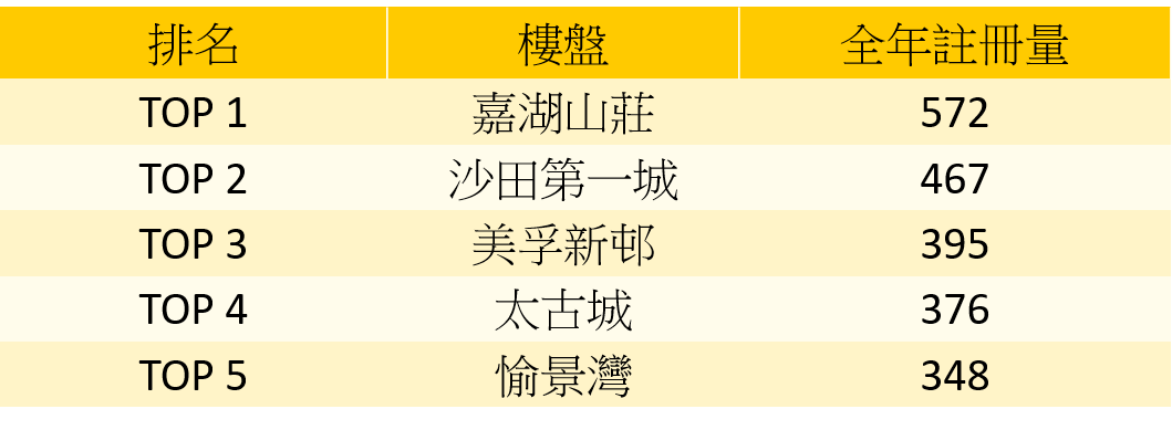 2020年全港二手住宅註冊量TOP5