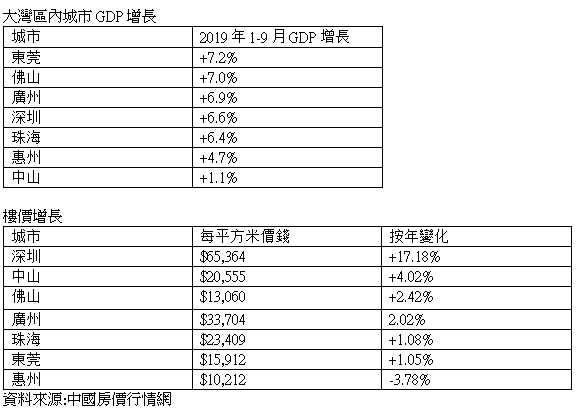 反之,雖然深圳今年頭三季的經濟增長只有6.6%,但是樓價上市最快,過去一年升17.18%,亦是內地大灣區城市中樓價最高的地區,部份近關口的地方,樓價可能拍得住香港。畢竟,深圳對比東莞,是一線城市,而且多外來人口到當地公司,以及近年愈來愈多科技公司會在深圳設立公司,亦刺激當地的樓價。