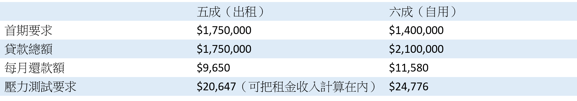 按揭成數變化對供樓影響: