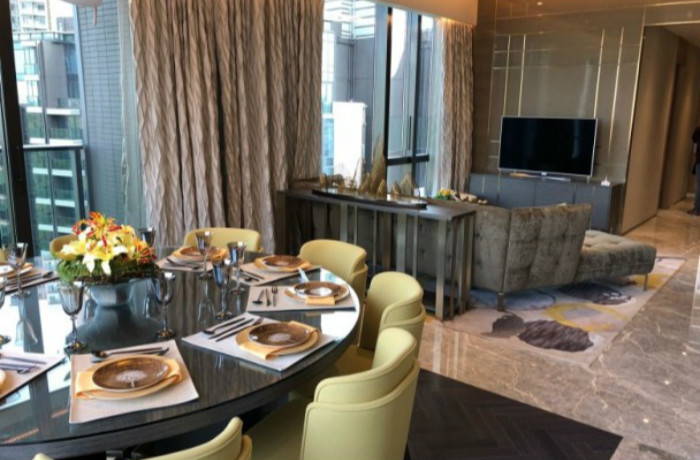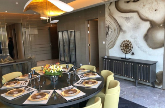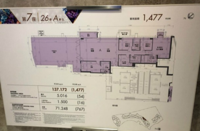 嘉里建設何文田皓畋首度開放連平台特色示範單位,單位為7座26樓A室,為連裝修三房連套房單位,實用面積1,477方呎,附設767方呎前庭,景觀開揚,客飯聽以長形設計,主人房至前庭長達約30米。