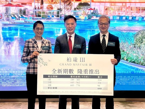 中國海外地產董事總經理游偉光稱,壓軸推出的柏瓏III,剛獲批預售,由四座住宅大樓組成,提供680伙,戶型涵蓋一房至三房間隔,單位實用面積339至770方呎。