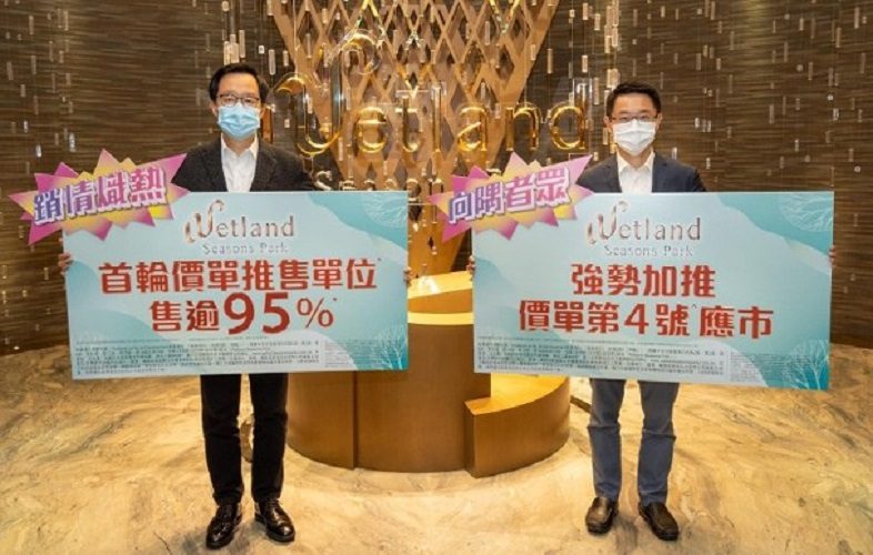 新盤開售熱銷,新鴻基地產(00016)副董事總經理雷霆表示,旗下天水圍Wetland Seasons Park第2期,延續1期暢旺銷情,昨日(5月23日)進行首輪銷售,售出首批逾95%單位,為集團套現超過13億元。有見市場反應熱烈,向隅客眾多,故即日(5月24日)加推價單第4號共93伙應市,折實平均呎價為12,538元,屬原價加推。