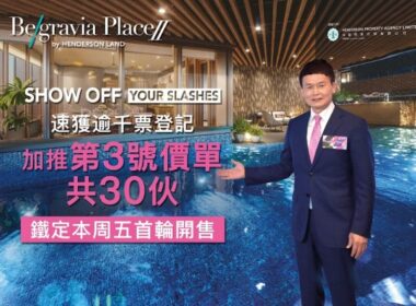恒基地产(00012)旗下长沙湾Belgravia Place第2期,连续第二日加推单位,周一(24日)推出价单第3号,涉及30伙,折实平均呎价约16,438元。