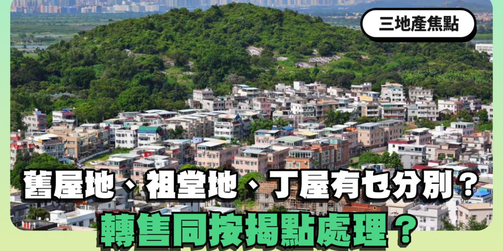 首先,村屋大致可分為3類,分別是「舊屋地」或「老屋」、「祖堂地」及「丁屋」。由於不同類型的村屋涉及不同的的轉售限制及業權問題,買家入手前,要先了解村屋屬於那一種類型,以及影響按揭等安排。