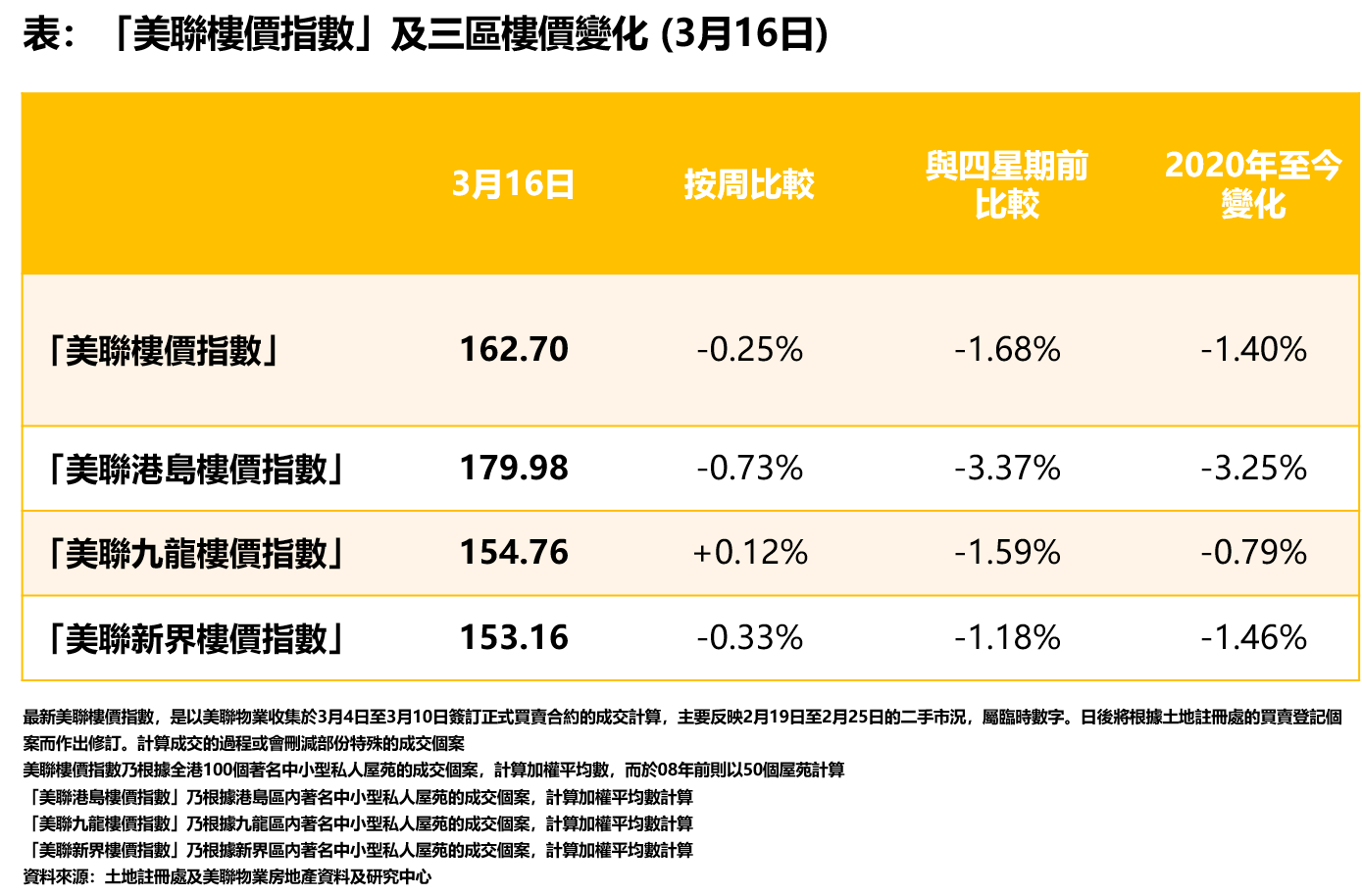 最新「美聯樓價指數」下跌,主要受港島及新界區的拖累,當中「美聯港島樓價指數」最新報179.98點,按周跌約0.73%;本年至今更累跌約3.25%,累積跌幅是三區最大;新界區方面,「美聯新界樓價指數」最新報153.16點,按周跌約0.33%;而本年迄今累跌約1.46%;反觀,九龍區方面,「美聯九龍樓價指數」最新報154.76點,按周微升約0.12%;而本年至今則仍累跌約0.79%,年內跌幅是三區最少(見表)。