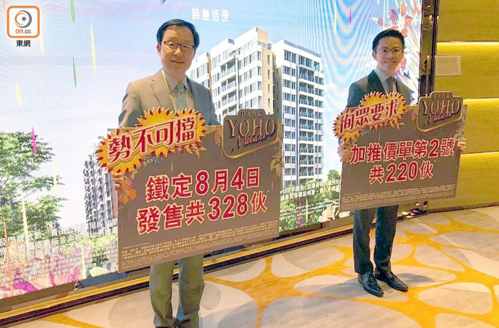 8月新盤開售潮一觸即發。新鴻基地產(00016)副董事總經理雷霆表示,旗下元朗錦田北PARK YOHO Milano連日來收票反應理想,落實原價加推220伙,折實平均呎價14,580港元,落實周六(8月4日)開售328伙,價單市值逾28億元。