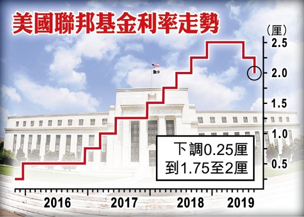 美國聯儲局於香港時間周四凌晨宣布今年第2次減息,聯邦基金利率調低0.25厘,至介乎1.75至2厘,符合市場預期。據當局最新預測顯示,聯儲局官員對未來是否進一步減息存在意見分歧。