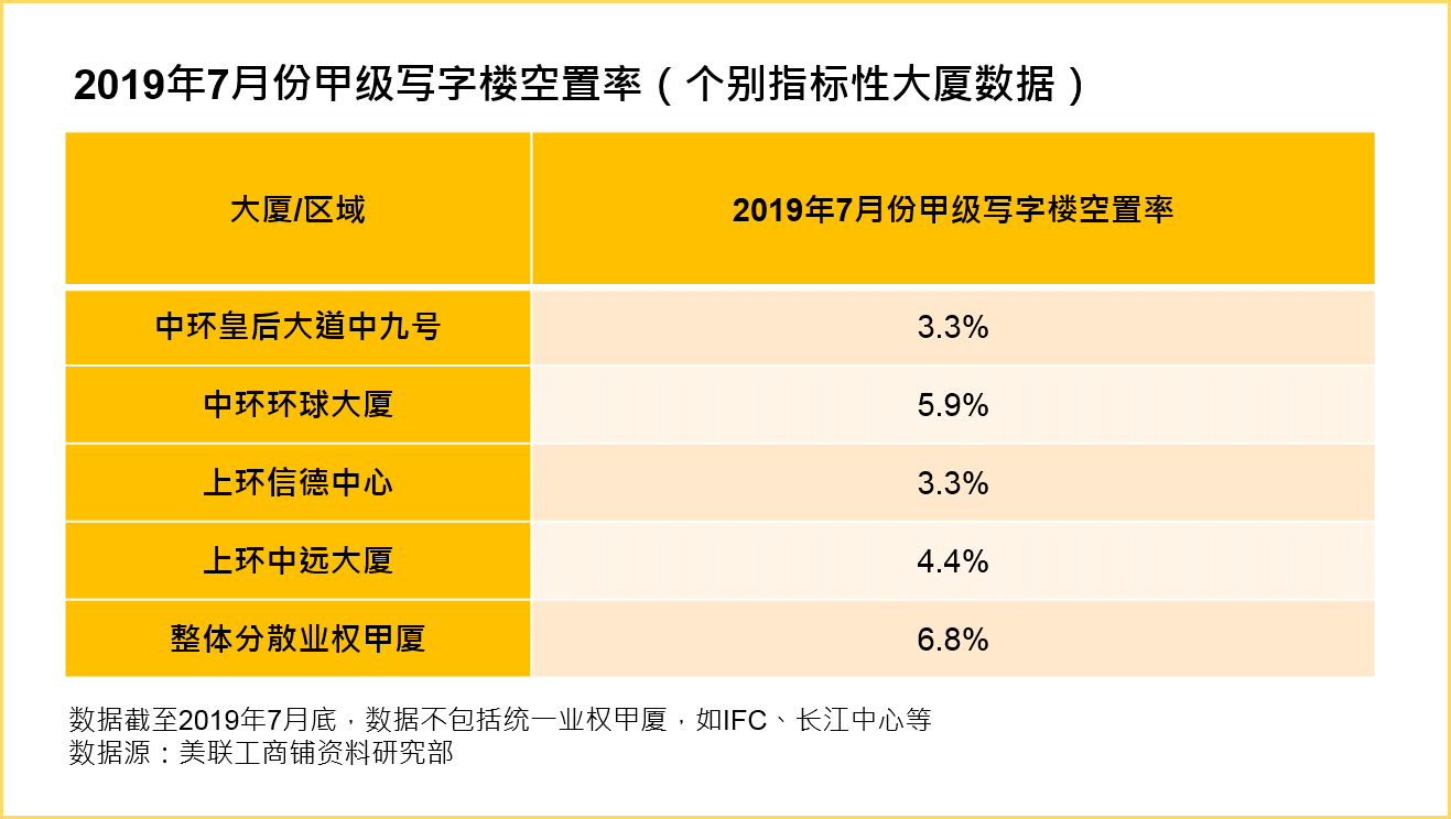 粵港澳大灣區的國策下,中港兩地人才、資本、商貿往來更緊密互動。中上環作為香港商貿發展的船頭堡,彙聚了全球500強企業及上市公司,形成世界級CBD核心商圈,為賈商進駐香港及國際的戰略據點。加上中上環發展成熟,集港澳客運碼頭、地鐵、直升機海陸空交通樞紐,令不少來往中港澳業務的企業趨之若鶩,導致區內甲級寫字樓空置率低企,單位放租不久馬上獲得吸納。據美聯工商鋪資料研究部統計(見下圖),中上環個別指標性甲級寫字樓空置率普遍低於全港整體甲級寫字樓(空置率為6.8%)。其中,中環皇后大道中九號和上環信德中心空置率僅錄3.3%。