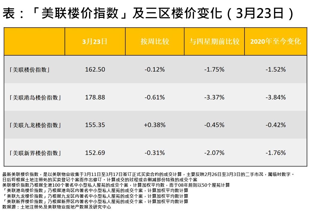 「美聯樓價指數」連跌五周 按周跌約0.12%