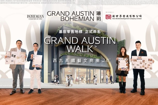 新世界發展資產及房地產組合管理總監林浩文表示,項目基座零售商舖命名為GRAND AUSTIN WALK,佔地約2,300方呎,涉及兩個舖位。該盤積極軟銷,最推出刊物《高鐵搵食攻略》,以介紹周邊食肆配套。
